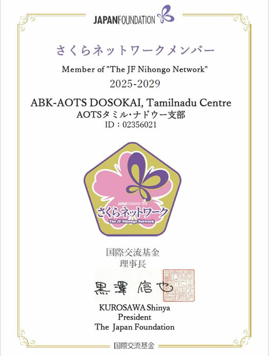 Certificate of Commendation by The Consul General of Japan in Chennai for the year 2022